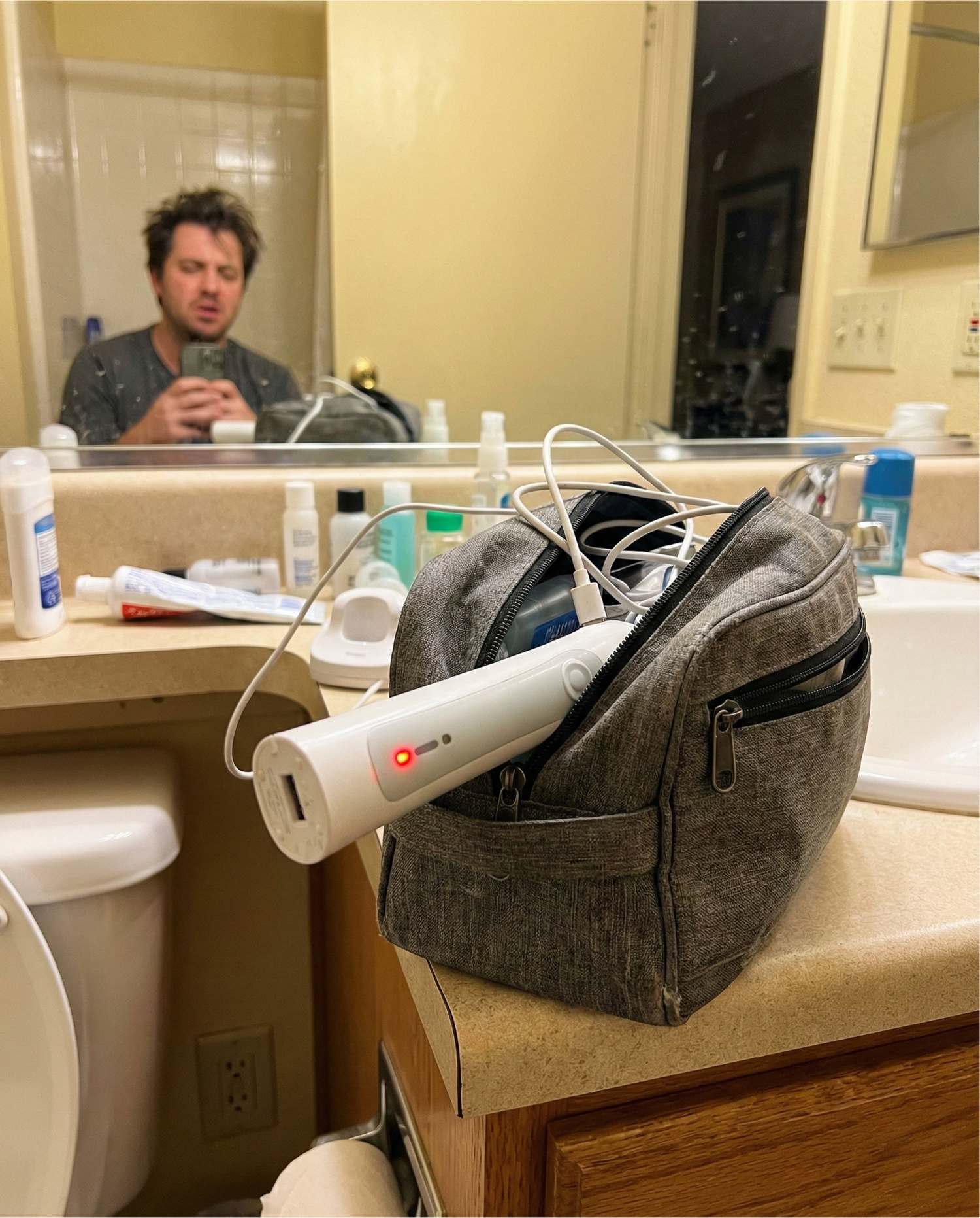 The bulky plastic handle that barely fits in your toiletry bag. The charging dock you have to remember, and then find an outlet for in a hotel bathroom that has exactly one, behind the toilet. The blinking red light on night three of a five-night trip, mocking you.
